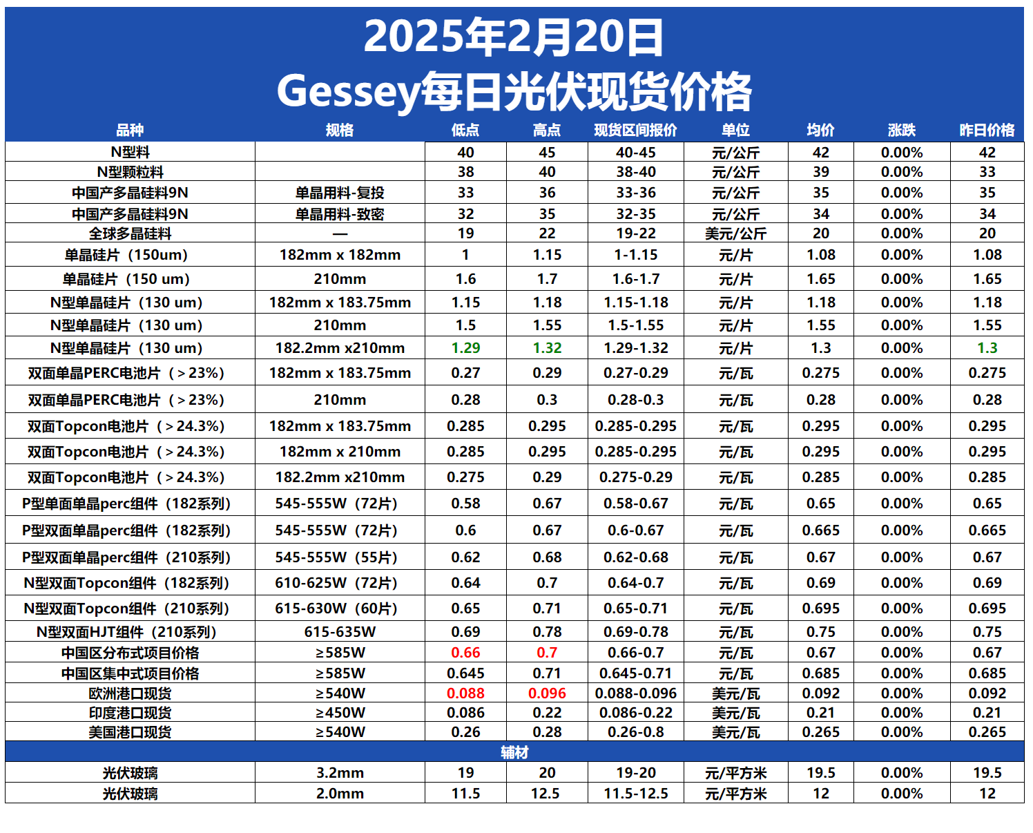 Gessey:2月20日每日光伏市场行情2025-02-20 17:19来源:gessey浏览数:249次